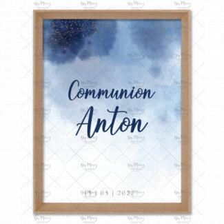 Affiche Communion Bienvenue personnalisée – Thème Aquarelle Bleu marine & Or