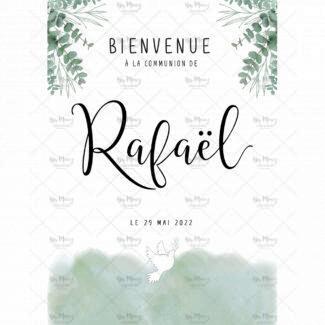 Affiche Communion Bienvenue personnalisée – Thème Eucalyptus aquarelle