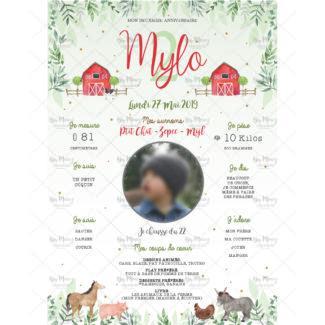 Affiche anniversaire personnalisée – Thème Les animaux de la ferme