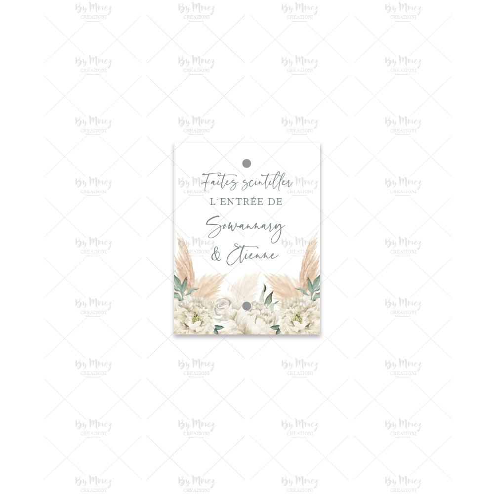 Etiquettes ÉTINCELLES (lot de 10) – Thème Fleuries White & Pampas
